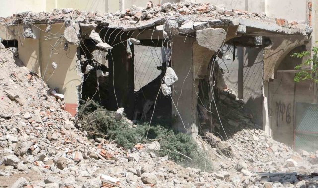 Diyarbakır'ın Bağlar ilçesinde ağır hasarlı binanın yıkımı sırasında bitişikteki apartmanın kolon ve kirişlerinde hasar oluştuğu iddia edildi.