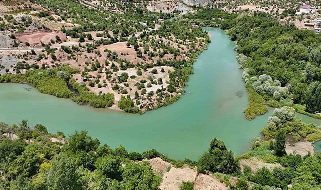 Diyarbakır'da berrak suyu ve yeşilliğiyle göz kamaştıran köy havadan görüntülendi