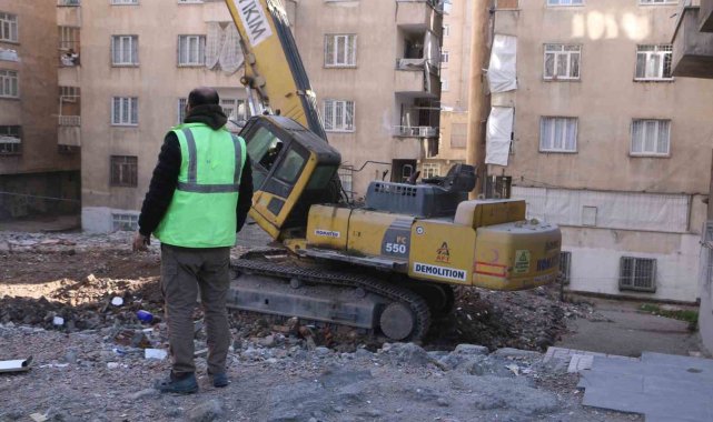 Diyarbakır'da depremden etkilenen ağır hasarlı binaların yıkımı devam ediyor