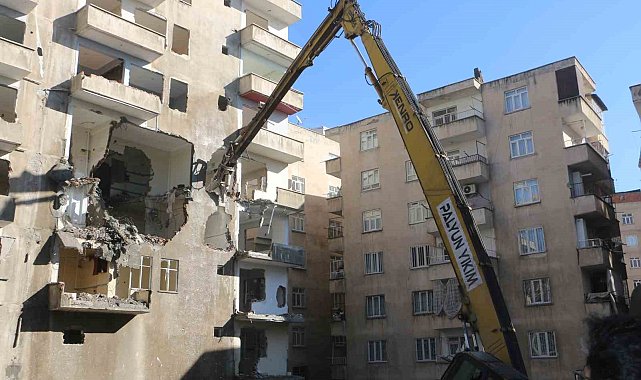 Diyarbakır'da, 6 Şubat 2023'te meydana gelen Kahramanmaraş merkezli depremlerden etkilenip ağır hasar alan binaların yıkımı devam ediyor.