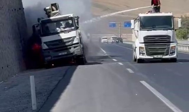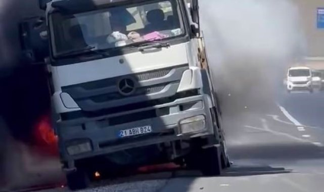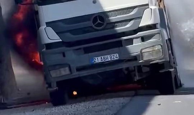 Diyarbakır'da bir kamyon seyir halindeyken alev aldı. Yangın arasözle söndürüldü.