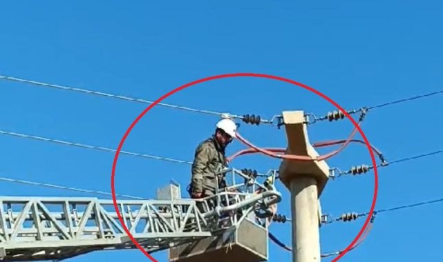 Diyarbakır'da yüksek gerilim hattına takılan güvercin kurtarıldı