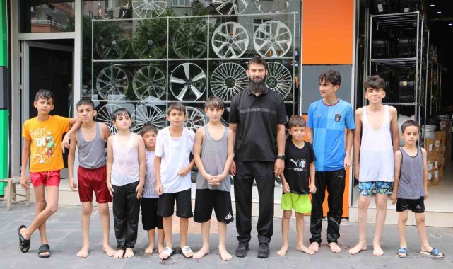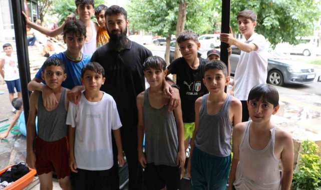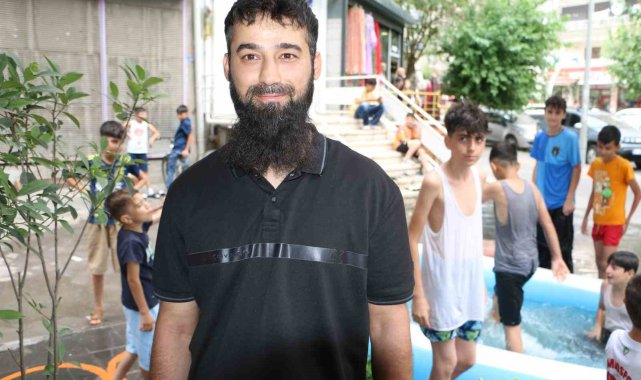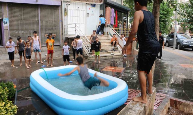 Hava sıcaklıklarının 45 derecenin üzerinde seyrettiği Diyarbakır'da bir esnaf, çocuklara serinlemeleri için şişme havuz açtı.Merkez Bağlar ilçesi Selahattin Eyyubi Caddesi'nde araç jant işi yapan 36 yaşındaki Ercan Alkın, çocuklar için örnek bir davranışa imza attı. Alkın, iş yerinin önüne kurduğu şişme plastik havuzun içini suyla doldurup çocukların serinlemesini sağlıyor. Sıcaktan bunalan çocuklar, gün boyu bu küçük havuzda vakit geçirerek hem eğleniyor hem de serinliyor.Alkın, çocukların denize veya göle gitme gibi bir durumları olmadığından dolayı böyle bir projeye imza attıklarını söyleyerek, "Çocuklar sevinsinler, neşelensinler aynı zamanda bu sıcaktan bunaldıkları için serinlemeleri için havuz aldık" dedi. Alkın, "Bunu Allah için yapıyoruz, serinlesinler diye. Allah'a hamdolsun bu şekilde onların serinlemesini ve neşelenmesini sağlıyoruz. Gençler de en azından sokaktaki kötü alışkanlıklardan, kötü söylemlerden, argo konuşmalardan arındırmaya çalışıyoruz" dedi.Esnafa teşekkür eden çocuklar da sıcaktan bunaldıkları için her gün buraya gelip serinlediklerini ve sokağın kötü alışkanlıklarından uzaklaştıklarını dile getirdi.