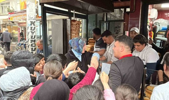 Diyarbakır'da bir dönerci, Kutlu Doğum Haftası'nda yaklaşık 2 bin kişiye döner ikramında bulundu.Bağlar ilçesi Dörtyol mevkiinde Kutlu Doğum Haftası kapsamında anlamlı bir etkinlik gerçekleştirildi. Dönerci Mehmet Çağrı ile Muradiye Mahallesi Muhtarı Dilek Demir'in öncülüğünde yaklaşık 2 bin adet döner vatandaşlara ücretsiz ikram edildi. Yoğun ilgi gören etkinlikte dağıtılan dönerlerden almak isteyen vatandaşlar uzun kuyruklar oluşturdu. Vatandaşlar, yapılan ikramdan dolayı memnuniyetlerini dile getirerek, organizasyonu gerçekleştiren esnaf ve mahalle muhtarına teşekkür ettiler.