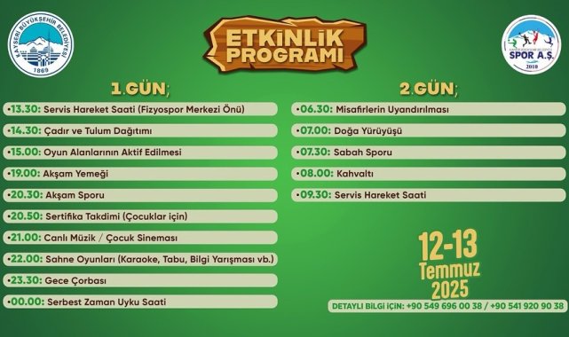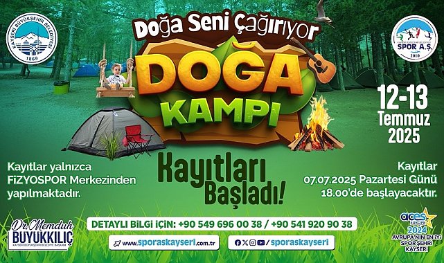 Kayseri Büyükşehir Belediyesi Spor A.Ş. tarafından Sarımsaklı Barajı Kamp Alanı'nda düzenlenecek olan 'Doğa Seni Çağırıyor' Doğa Kampı kayıtları başladı.Yılın her dönemi düzenlediği sosyal, kültürel ve sportif etkinlikler ile Kayserilileri buluşturmaya devam eden Büyükşehir Belediyesi, 'Doğa Seni Çağırıyor' sloganıyla düzenlenen ve geleneksel hale gelen doğa kampının bu yaz dönemi için kayıtlarını açtı. Büyükşehirin sporda marka kuruluşu Spor A.Ş. tarafından yaz aylarında düzenlenen ve doğaseverlerin yoğun ilgisi ile karşılaşan 'Doğa Seni Çağırıyor' Doğa Kampı 2025 yaz sezonu kayıtları 7 Temmuz saat 18.00 itibari ile başladı. Ailelerin; çocukları ile birlikte keyifli vakit geçirmenin yanı sıra birbirinden farklı etkinliklere de katılarak doğanın tadını çıkarma fırsatı bulduğu doğa kampının ilki için tarih 12-13 Temmuz olarak belirlendi. Sarımsaklı Barajı Kamp Alanı'nda birbirinden farklı oyun alanları, sabah sporu ve birçok etkinlikle doğanın keyfini doyasıya çıkaracak vatandaşlar muhteşem bir kamp deneyimi yaşayacak. Kamp süresince ulaşım, sabah kahvaltısı, akşam yemeği, çadırlar ve uyku tulumu Spor A.Ş. tarafından temin edilecek. 2 gün olarak planlanan etkinlik programlarında 1'inci gün, 13.30 Fizyospor Merkezi Önü Servis Hareket Saati, 14.30 Çadır ve Tulum Dağıtımı, 15.00 Oyun Alanlarının Aktif Edilmesi, 19.00 Akşam Yemeği, 20.30 Akşam Sporu, 20.50 çocuklar için Sertifika Takdimi, 21.00 Canlı Müzik / Çocuk Sineması, 22.00 Karaoke, Tabu, Bilgi Yarışması gibi sahne oyunları, 23.30 Gece Çorbası ve 00.00 Serbest Zaman Uyku Saati olarak belirlendi. Etkinliğin ikinci günü ise 06.30 Misafirlerin Uyandırılması, 07.00 Doğa Yürüyüşü, 07.30 Sabah Sporu, 08.00 Kahvaltı ve 09.30 Servis Hareket Saati ile kamp sona erecek.0-6 yaş için ücretsiz olan kamp, 7-13 yaş için 1000 TL, 14 yaş ve üzeri için 1200 TL olarak belirlenirken kayıtları yalnızca Fizyospor Merkezi'nden (Kayseri Büyükşehir Belediyesi yanı) alınan "Doğa Seni Çağırıyor" Doğa Kampı hakkında detaylı bilgiye ise 0549 696 00 38 ve 0541 920 90 38 numaralı telefonlar üzerinden erişilebilecek.