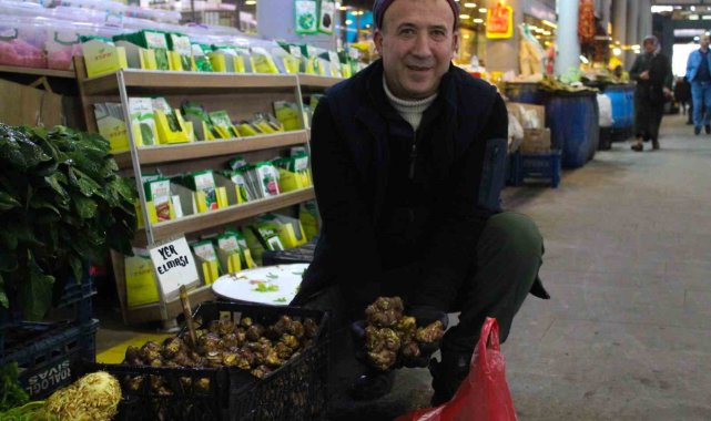 Sivas'ta bir üretici doğada kendiliğinden yetişen yen almasını, patates gibi tarlasına ekerek çoğaltmayı başardı. Özellikle kış aylarında tüketilen yer elması, bir çok hastalığa da şifa oluyor.Doğadan toplanan yer elmasının ekimi ilkbahar aylarında yapılmıştı. Patates gibi toprağa ekilen elmaların hasadına başlanıldı. Pazarlarda da kilosu 50 liradan satılan yer elmasının, bünyesinde barındırdığı A ve B vitaminleri sayesinde birçok hastalığa iyi gelmesiyle biliniyor. İdrar söktürücü, kabızlık önleyici, yaşlanmaya karşı etkili ve diyet menülerinde de yer alan bu meyve özellikle de şeker hastalığına iyi gelmesiyle halk arasında biliniyor. Yer elmasının küçüklerinin tohum olarak kullanıldığını ifade eden pazarcı esnafı Ethem Yıldız, yer elmasının çok hızlı bir şekilde üreyip çoğaldığını söyledi."Şeker hastası olan komşularıma da veriyorum"Bahçesinden hasat ettiği yer elmalarından şeker hastası olan komşularına da verdiğini söyleyen Kadir Karakaş, "İlkbaharda patates eker gibi küçüklerini ektik, kışın da ayazını yedikten sonra söküyoruz. Birçok hastalığa faydalı, cildi güzelleştirir, sindirim sistemini düzenler, bağırsaklara iyi gelir ve özellikle şeker hastalığına iyi gelmesiyle bilinir. Bahçemizden söktükten sonra şeker hastası olan komşularıma da veriyorum. Karın ayazını yediği zaman daha lezzetli oluyor, yemeyenler pişman olur" diye konuştu."Sebze ve meyveden daha çok satılıyor"Kış aylarında yer elmasının pazarlarda sebze ve meyvelerden daha çok talep gördüğünü ifade eden Ethem Yıldız, "Ocak ayında toprak altından kazılarak toplanır. Sivas'ın bazı yerlileri ve başka illerden gelenler yer elmasının ne olduğunu biliyorlar buraya gelip almak istiyorlar. İstanbul İzmir gibi illerimize de kargo ile yer elmalarımızı gönderiyoruz. Şeker hastalığı gibi birçok hastalığa da iyi gelmektedir. Yer elmasının küçüklerini tekrardan toprağa gömerek tohum olarak kullanılabilir. Yer elması çok arsız bir meyvedir, tohuma veya gübreye gerek duymadan toprak altında da kendi kendine üreyerek çoğalabiliyor. Kış aylarında yer elmasına talep daha fazla, diğer sebze ve meyvelerden de daha fazla satılıyor. Biz de köylülerden alıyoruz, kilosunu da 50 liradan satıyoruz" dedi.