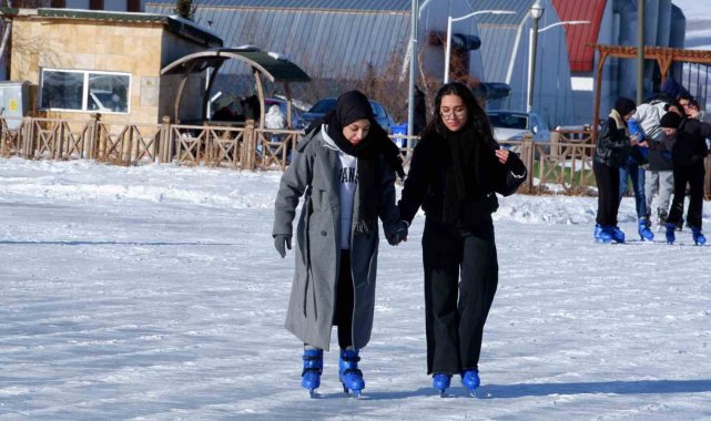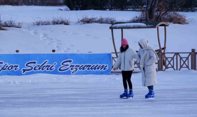 Erzurum Büyükşehir Belediyesi Olimpiyat Parkı'nda yüzeyi yaklaşık 35 santimetre buzla kaplanan havuz, paten tutkunlarının uğrak noktası oldu. Yaz aylarında piknikçileri ağırlayan mekan, kış mevsiminde ise paten öğrenmek isteyenlere imkan sunuyor. Patenle kaymasını bilenlere açık hava ve geniş alanda farklı deneyimler sunduklarını, öğrenmek isteyenlere de ders verildiğini anlatan Antrenör Yusuf Delibaş, "Burası özellikle açık havada çok güzel oluyor. Kış ayı boyunca çalışmalarımız ve eğitimlerimiz sürüyor. Paten tutkunlarını ve bu güzellikleri yaşamak isteyenleri buraya davet ediyoruz" dedi.