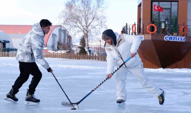 Buz tutan havuzda patenle açık havada kayanların yanında buz hokeyi antrenmanı yapan sporculara da rastlamak mümkün.