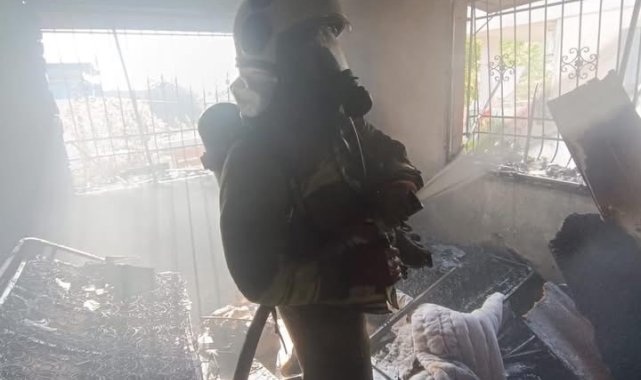 Hatay'da alevlere teslim olan apartman dairesindeki yangın, diğer evlere sıçramadan kontrol altına alındı.