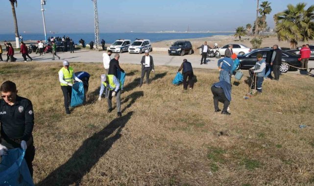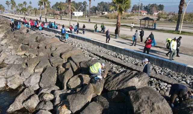 Hatay'ın Dörtyol ilçesinde Belediye ve Nazmiye Muratlı Gençlik Merkezi gönüllü gençlerinin iş birliğiyle düzenlenen 'Temiz Bir Dörtyol İçin El Ele' etkinliğinde, sahilde temizlik yapıldı.