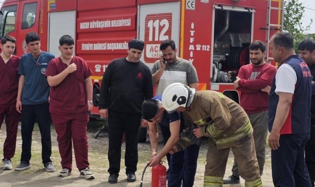 Hatay'ın Dörtyol ilçesinde bulunan Devlet Hastanesi'nde, personelin acil durumlara hazırlıklı olması amacıyla yangın güvenliği eğitimi düzenlendi. Eğitim, Dörtyol İtfaiyesi ekipleri tarafından verildi.