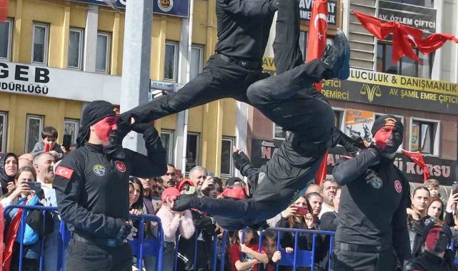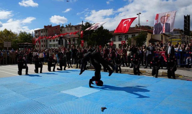 Kastamonu'da jandarma komandolar, Cumhuriyet Bayramı töreninde dövüş sanatlarındaki hünerleriyle büyük alkış topladı.