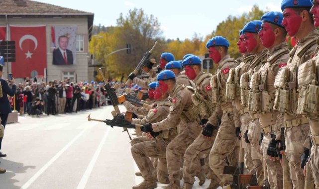Kastamonu'da jandarma komandolar, Cumhuriyet Bayramı töreninde dövüş sanatlarındaki hünerleriyle büyük alkış topladı.Kastamonu'da 29 Ekim Cumhuriyet Bayramı coşkuyla kutlandı. Cumhuriyet Meydanı'nda düzenlenen törene yüzlerce vatandaş katıldı. Törende vatandaşların bayramını kutlayan Vali Meftun Dallı, "Temelinde milletin inancı, harcında milletin fedakarlığı ve çatısında milletin iradesi bulunan Türkiye Cumhuriyeti, bugün geleceğe emin adımlarla yürümektedir ve sonsuza kadar payidar kalacağına olan inancımız tamdır. Kurulması, sıradan bir devletin kurulmasından çok daha fazlası olan; gerek cephedeki mücadelesiyle gerekse kuruluşuyla sömürge ve esir bütün milletlere, bütün coğrafyalara örnek teşkil eden Türkiye Cumhuriyeti, bugün de dünyada adalete, hürriyete ve umuda ışık olmaktadır. Yarınlarda da örnek ve önder bir ülke olmaya devam edecektir. Bugün bizlere düşen, Cumhuriyetimizi korumak, onu daha da yükseltmek, bilimde, sanatta, kültürde, demokraside ve insani değerlerde daha güçlü bir Türkiye inşa etmek, içinde bulunduğumuz asra mührümüzü vurmak, hep birlikte Türkiye Yüzyılı'nı gerçekleştirmektir" dedi.Jimnastik ve halk oyunları gösterileri sonrası İl Jandarma Komutanlığı Jandarma Arama Kurtarma (JAK) Timi iple iniş gösterisi yaptı. JAK ekipleri, iniş sırasında dev Türk bayrağı açarak vatandaşları selamladı. Kastamonu Jandarma Komando Eğitim Merkez Komutanlığı emrindeki komandolar, yakın dövüş sanatlarındaki hünerlerini sergiledi. Komandoların gösterisi vatandaşlardan büyük ilgi gördü.