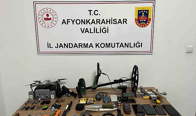 Afyonkarahisar'da dron ile kendilerince güvenlik önlemi alarak kaçak kazı yapan 7 kişi jandarma tarafından yakalandı.Olay, Emirdağ İlçesi Emirin köyü Tavşantepe mevkiinde meydana geldi. Edinilen bilgilere göre, bölgede kaçak kazı yapıldığı ihbarını alan jandarma ekipleri bölgeye giderek inceleme yaptı. Ekipler ardından bölgede S.A., A.Z., Y.O., Y.A., İ.K., M.D. ve A.Ö., isimli şahısların kaçak kazı yaptıklarını tespit etti. Ardından şahıslar gözaltına alındı. Bölgede yapılan aramada ise dron, mini lazer, dedektör, navigasyon cihazı, dijital pusula, çekiç, kürek ve elektronik malzemeler ile tabanca ele geçirildi.Olayın ardından gözaltına alınan şahısların işlemlerinin devam ettiği bildirildi.