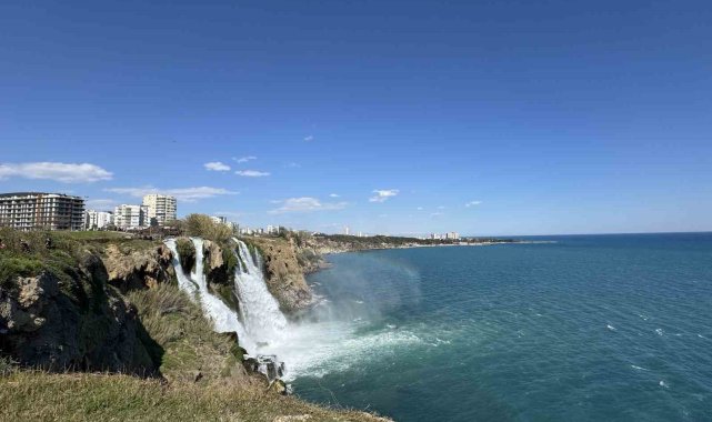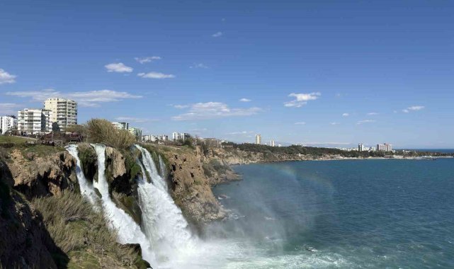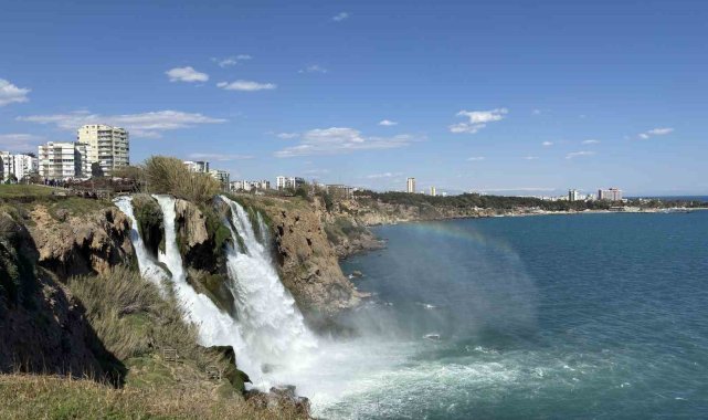 Antalya'nın Muratpaşa ilçesinde Düden Şelalesi'nde oluşan gökkuşağı, ziyaretçilere unutulmaz anlar yaşattı.Lara bölgesinde bulunan Düden Şelalesi, her yıl olduğu gibi bu sene de yerli ve yabancı turistlerin yoğun ilgisini görüyor. Doğal güzellikleri ve eşsiz manzarasıyla ziyaretçilerini kendine çeken şelalede gökkuşağı oluştu. Düden Şelalesi'nin denizle buluştuğu noktaya gelen turistler, bu doğa harikasını ölümsüzleştirmek için birbirleriyle yarıştı. Gökkuşağı, ziyaretçilere unutulmaz anlar yaşattı.