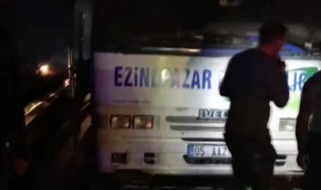Dumanların yükseldiği yolcu midibüsündeki yangını muhtar ve vatandaşlar önledi