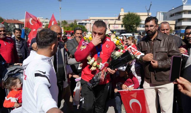 Dünya 3'ncüsü olan milli güreşçiye Erzincan'da coşkulu karşılama