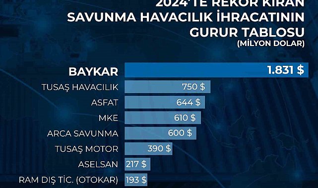 Dünya insansız hava aracı ihracat pazarının lideri olan Baykar, 2024 yılında gelirlerinin yüzde 90'ını ihracattan elde ederek, 1.8 milyar dolarlık ihracat gerçekleştirdi.