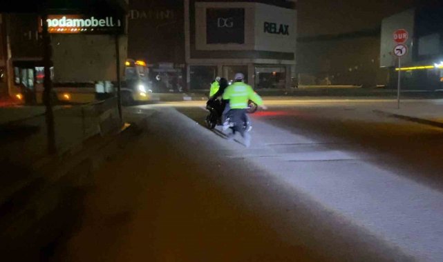 Bursa'nın İnegöl ilçesinde uygulama yapan trafik ekiplerinin dur ihtarına uymayarak polisin düşerek yaralanmasına sebep olan 2 motosikletli yakalandı. İnegöl Emniyet Müdürlüğü ekipleri plakalı gizli olan motosikletlerin sürücülerini, dedektif gibi iz sürerek yakaladılar. 16 BKF plakalı motosikletin sürücüsü ve şüphelisi B.Ö.'nün sosyal medya hesabından videolu şekilde "2 polisi peşinden koşturup birini sürükleyip yere düşürdükten sonra videoları silme şekli" ifadelerini paylaşması tepki çekti. 2 şahsa toplam 57 bin 830 TL cezai işlem uygulandı. Mahkemeye sevk edilen iki şüpheli de tutuklandı.İnegöl Emniyet Müdürlüğü Trafik Büro Amirliği ekipleri Perşembe akşamı Mahmudiye Mahallesi Ertuğrulgazi Caddesi motosiklet sürücülerine yönelik uygulama yaptılar. Uygulama sırasında polis ekipleri 2 motosikletin sürücüsüne dur ihtarında bulundular. Polis ekipleri, dur ihtarına uymayarak hızlanan motosikletleri durdurmaya çalıştılar. Durmayarak hızlanan motosikletlerden biri trafik memuru M.A.'yı yere düşürerek başından yaralanmasına neden oldu.Kaçtılar ama kameraya yakalandılarBir polisin yaralanmasına neden olan plakaları gizli 2 motosikletli hızla kaçarak izlerini kaybettirdiler. Polisin dur ihtarına uyumayıp yaralanmasına neden olan anlar ise amatör kameraya yansıdı.İnegöl Emniyet Müdürlüğü ekipleri şahısları yakalamak için çalışma başlattılar. Ekipler, şüphelilerden B.Ö.'nün Tiktok hesabından videolu şekilde "2 polisi peşinden koşturup birini sürükleyip yere düşürdükten sonra videoları silme şekli" ifadelerini paylaştığını tespit edildi.Yapılan titiz çalışma sonucu şüpheliler B.Ö(22) ve İ.Ü.(21) Mahmudiye Mahallesi'ndegözaltına alındılar.Şüphelilerden B.Ö.'ye 8 ayrı trafik suçundan toplam 30 bin 830 TL cezai işlem uygulandı. Ehliyetine 1 ay el konulurken, motosiklet trafikten men edildi.34 MRS plakalı motosikletin sürücüsü ve şüphelisi İ.Ü.'ye 7 ayrı trafik suçundan 27 bin 021 TL cezai işlem uygulandı. Sürücünün ehliyetine 1 ay süreyle el konuldu, motosiklet de trafikten men edildi.Şüpheliler adli soruşturma çerçevesinde de "Görevli Memura Mukavemet" suçundan gözaltına alındılar.Mahkemeye sevk edilen iki şüpheli de tutuklanarak cezaevine gönderildi.
