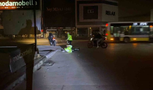 'Dur' ihtarına uymayıp polise çarptı.. Polisin yaralandığı anlar kamerada