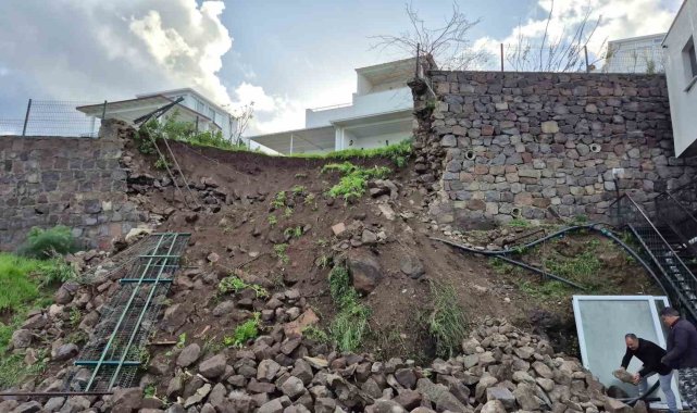 Muğla'nın Bodrum ilçesinde etkili olan sağanak yağışın ardından istinat duvarı yıkıldı. Enkaz, park halindeki otomobile de zarar verdi.Olay, sabah saatlerinde Dirmil Mahallesi Kızılburun mevkisindeki bir sitede meydana geldi. Gece saatlerinde etkili olan gök gürültülü sağanak yağış sonrası istinat duvarı ve üzerindeki demir çit yıkıldı. Yıkılan duvarın bir kısmı, park halindeki otomobilin üzerine düştü. Gürültüyü duyan site sakinleri, panikle dışarı çıktı. İhbarın ardından polis ekipleri olay yerine geldi. Otomobil enkazın olduğu bölgeden uzaklaştırıldı.Otomobilin sahibi Tarık Helvacı, bir süredir duvarın altından atık su aktığını, sağanak yağmurun da etkisiyle duvarın yıkıldığını ifade ederek şöyle konuştu: "7-8 yıldır taş duvarın altından foseptik suyu akıyor yağışla da birlikte en sonunda çöktü. Allah'tan kimseye bir şey olmadı. Biz gürültüyle uyandık, arabamda hasar meydana geldi."