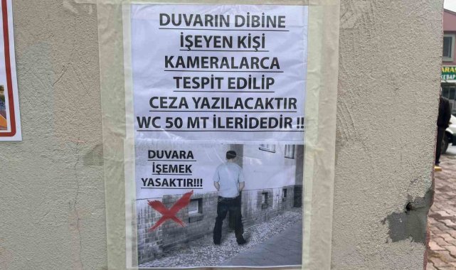 Kayseri'de bir şahsın iş yerinin duvarına tuvaletini yapmasından bıkan esnaf duvara afiş asarak çözüm bulmaya çalıştı.