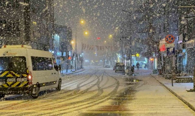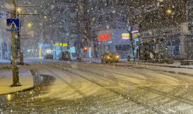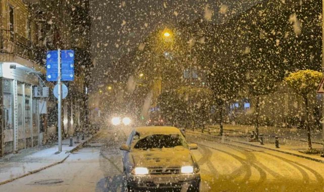 Meteoroloji'den yapılan uyarının ardından Düzce şehir merkezinde yoğun kar yağışı başladı.