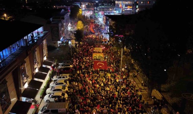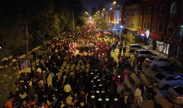 Düzce'de Cumhuriyet'in ilanının 102. yılı ve Cumhuriyet coşkusu caddelere sığmadı. Kutlamaları çerçevesinde düzenlenen fener alayı Düzcelileri sokağa döktü.