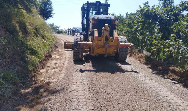 Düzce'de köy yollarında malzemeyle bakım çalışmaları tüm hızıyla devam ediyor.