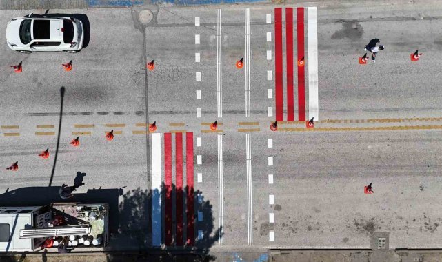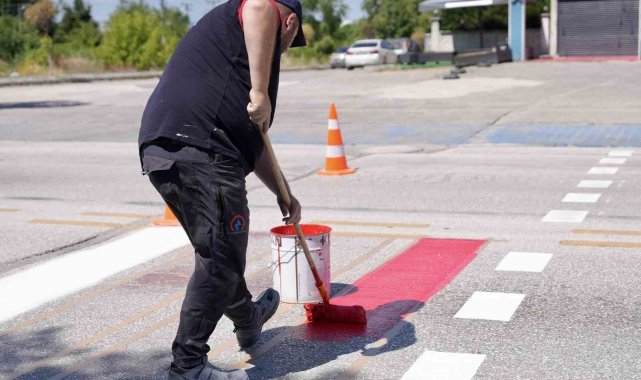 Düzce'de yaya çizgileri yenileniyor