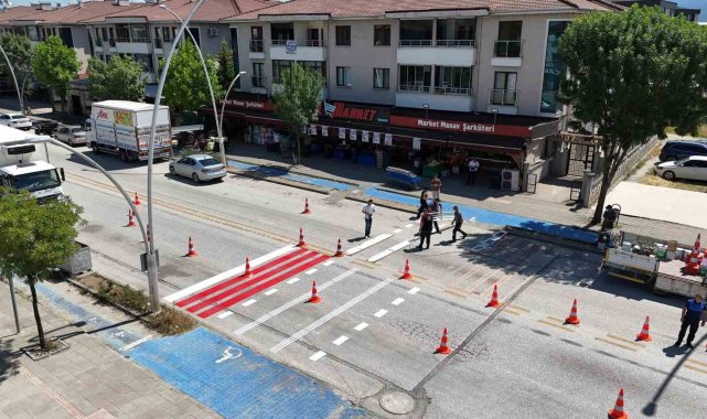 Düzce'de kent merkezinde bazı yollarda silinen yaya geçitlerinde yenileme çalışması gerçekleştirildi.