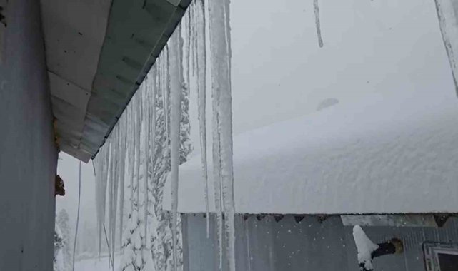 DÜZCE (İHA) – Düzce'de iki gündür aralıklarla devam eden yağışın ardından yüksek kesimlerde kar kalınlığı 1,5 metreyi buldu.Kent genelinde etkili olan kar yağışı, şehir merkezini beyaza bürürken yüksek rakımlı bölgelerde hayatı olumsuz etkiledi. Düzce ile Bolu sınırında yer alan 1485 rakımlı Sinekli Yaylası'nda kar kalınlığı 1,5 metreye ulaştı. Soğuk havanın da etkisiyle bölgedeki evlerin çatılarında buz sarkıtları oluştu.Yayladaki evinde kalan Mehmet Albayrak, bölgede kış şartlarının ağır geçtiğini belirterek, "Sinekli Yaylası'ndayız. Kar kalınlığı 1,5 metreye ulaştı. Evimizin camı neredeyse kapanmak üzere, sadece yarım metre boşluk kaldı" dedi.