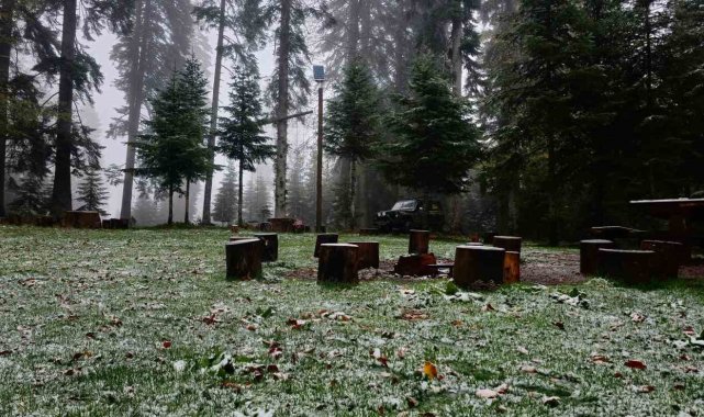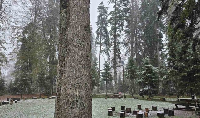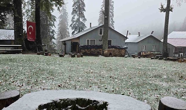 DÜZCE (İHA) – Düzce'de hava sıcaklıklarının düşmesinin ardından etkili olan sağanak, yüksek kesimlerde yerini kar yağışına bıraktı. Sinekli, Samandere, Topuk, Balıklı gibi yaylalarda etkili olan kar, çevreyi beyaz örtüyle kapladı.