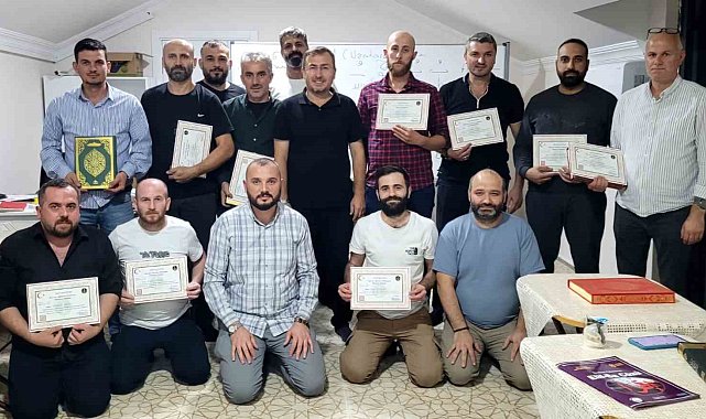ı Kerim öğretildiği belirtildi.Düzce'de esnafların Kur'an-ı Kerim öğrenmesi için başlatılan eğitimler tüm hızı ile devam ediyor. Müftülük tarafından başlatılan "Düzceli Esnaflar Kur'an Öğreniyor" proje çerçevesinde üç yıldır 7'den 77'ye her yaştan erkek bireylere Kur'an-ı Kerim öğretildi. Düzce İl Müftülüğü Eğitim Uzmanı Necmettin Kuzu tarafından hazırlanan proje ile 8 saatte bireylere Kur'an-ı Kerim öğretiliyor. Öğrenmeyi kolaylaştıran, 2006 yılından itibaren Türkçe öğreniminde de kullanılan "Ses Temelli Cümle Eğitimi" yöntemiyle kursiyerler Kur'an-ı Kerim'i sadece sekiz günde okumaya başlıyor. Düzce Müftüsü Osman Aydın projenin, çalışma hayatından dolayı ulaşılması güç olan esnaf, akademisyen, memur, amir, işçi, emekli ve diğer yetişkin erkeklere ulaşılması bakımından çok önemli olduğunu ifade ederek, "Projede eğitim alanı olarak Düzce İl Müftülüğü Fevzi Çakmak Mahallesi Çok Amaçlı Eğitim Merkezinin kullanılması bizim için çok önemli. Hedef kitleye ulaşma imkanı çok iyi durumda devam ediyor. Eğitimlere devam eden ve hedef kitleye ulaşan Eğitim Uzmanı Necmettin Kuzu'ya teşekkür ederiz. "Düzceli Esnaflar Kur'an Öğreniyor" projesinde Kuran'ı Kerim Öğretimi ile birlikte kursiyerlerle her ders sonu mini sohbet, öncesi günlük genel sohbet, yardım faaliyetleri, umre faaliyetleri, esnaf kaynaşması, aylık hatim okuma gibi etkinlikler de yapılırken, bu zamana kadar 460 esnafa Kur'an-ı Kerim öğretildiği belirtildi.