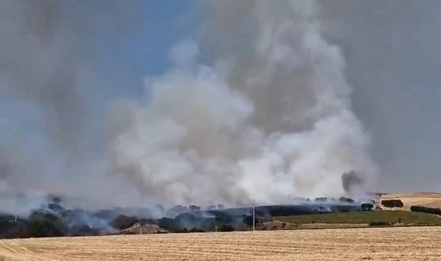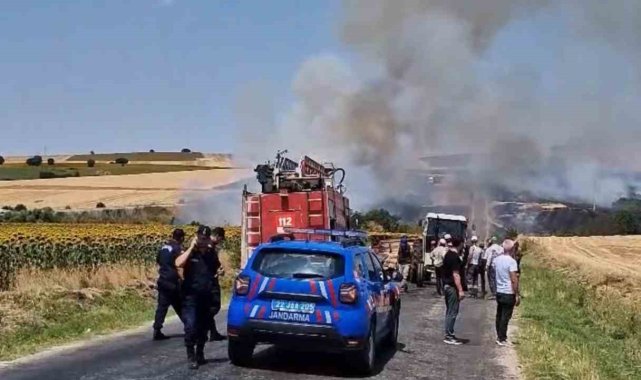 Edirne'de balya yüklü römorkta çıkan yangın, tarım arazilerine sıçradı. Ekipler ve köylüler, alevleri kontrol altına almak için seferber oldu.Edirne'nin Lalapaşa ilçesine bağlı Hanlıyenice köyü yakınlarında, balya yüklü bir römorkta yangın çıktı. Kısa sürede büyüyen alevler, çevredeki tarım arazilerine sıçradı.İhbar üzerine bölgeye Orman İşletme Müdürlüğü, Lalapaşa ve Süloğlu belediyelerine ait itfaiye ekipleri ile su tankerleri sevk edildi. Yangına müdahale edilirken, köylüler de anız bulunan arazilerini sürerek alevlerin büyümesini önlemeye çalıştı.Yangın kontrol altına alınarak söndürüldü.