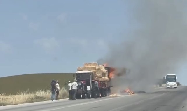 Edirne'de balya yüklü römorkta yangın çıktı