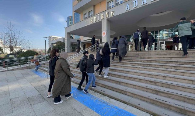 Edirne'de düzenlenen FETÖ operasyonunda gözaltına alınan 6 şüpheli adliyeye sevk edildi.Edirne merkezli 5 ilde Edirne Cumhuriyet Başsavcılığı tarafından yürütülen FETÖ soruşturması çerçevesinde operasyon düzenlendi. Edirne Emniyet Müdürlüğü Terörle Mücadele Şube ve İstihbarat Şube ekipleri tarafından Edirne, İstanbul, Bursa, Bilecik ve Çanakkale'de düzenlenen operasyonda 12 şüpheli gözaltına alındı. FETÖ'nün öğrenci yapılanması içinde faaliyet yürüttükleri değerlendirilen şüphelilerin arasında Trakya Üniversitesi'nde öğrenim gören ve üniversiteden mezun olan kişiler de yer aldı. Edirne İl Emniyet Müdürlüğü'nde işlemleri tamamlanan 12 şüpheliden 6'sı geçtiğimiz gün çıkarıldığı mahkemece adli kontrol şartıyla serbest bırakıldı. Diğer 6 şüpheli ise bugün Edirne Adliyesi'ne sevk edildi. Şüphelilerin adliyedeki işlemleri sürüyor.