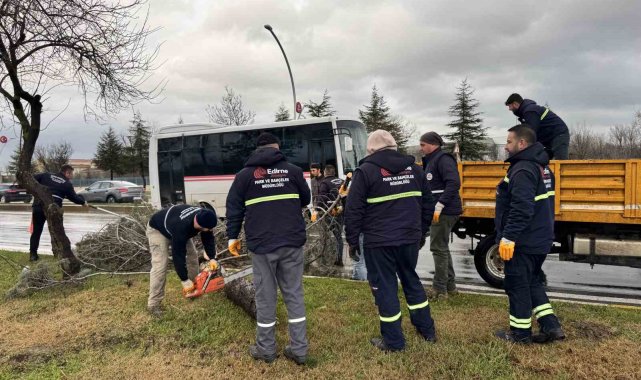 Edirne'de fırtına ağaçları devirdi