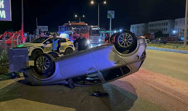 Edirne'de direksiyon kontrolünü kaybederek refüje çarpan otomobil sürücüsünün takla atması sonucu iki kişi yaralandı.
