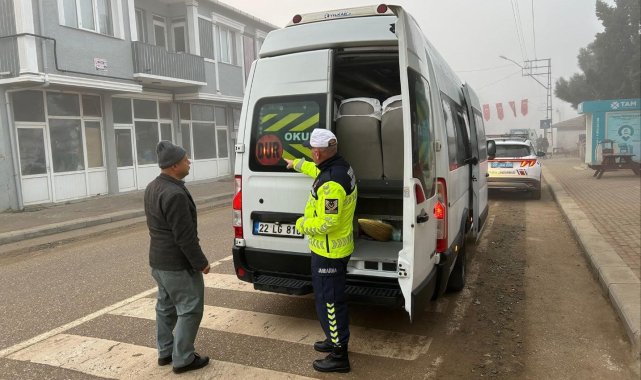 Edirne'de taşımalı sistemle eğitim gören öğrencileri taşıyan okul servis araçlarında kontrol ve denetim yapıldı.