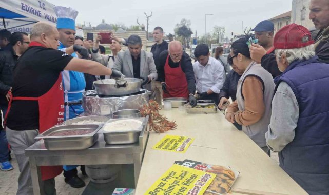Edirne'de Selimiye'nin gölgesinde tava ciğer dağıtıldı