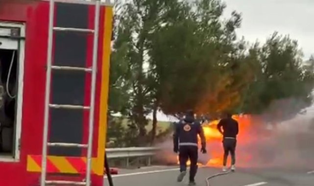 Edirne'de seyir halindeki otomobil alev alev yandı