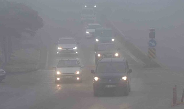 Edirne'de sabah erken saatlerde etkili olan yoğun sis sebebiyle görüş mesafesi bazı noktalarda 50 metreye kadar düştü.