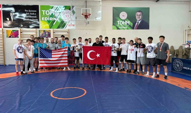 Edirne'de düzenlenen güreş turnuvasında Türk güreşçiler ABD'li sporculara karşı 10 müsabakanın 9'unda galip gelerek, minderde büyük üstünlük ile kazandı.