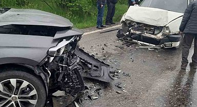 Kamyonet ile çarpışan yolcu minibüsü devrildi
