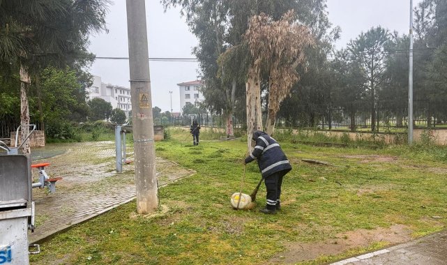 Havaların ısınmasıyla birlikte yeşil tonunun hakim olduğu Efeler'de saha çalışmalarını sürdüren belediye ekipleri, bahar temizliği çalışmalarını sürdürüyor.