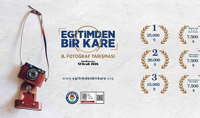 Eğitim-Bir-Sen tarafından bu yıl 8'incisi düzenlenen 'Eğitimden Bir Kare Ulusal Fotoğraf Yarışması'nın başvuru süreci başladı.Eğitim-Bir-Sen tarafından eğitim süreçlerinin ardındaki emeği en özel karelerle görünür kılmak hedefiyle bu yıl 8'incisi düzenlenen 'Eğitimden Bir Kare Ulusal Fotoğraf Yarışması' başvuruları başladı. Yarışma, eğitimin önemine dikkati çekmeyi, eğitim çalışanlarının fedakarlıklarını görünür kılmayı ve eğitimcilerin çarpıcı hikayelerini fotoğraf sanatı aracılığıyla kamuoyuna aktarmayı amaçlıyor. Aynı zamanda eğitim çalışanlarını sanat alanında da desteklemeyi ve fotoğraf sanatçılarıyla bir araya getirmeyi hedefliyor.Eğitimden Bir Kare Fotoğraf Yarışması, Türkiye Fotoğraf Sanatı Federasyonu (TFSF) onayı ve iş birliğiyle gerçekleştirilecek. Katılımcılar, en fazla 4 eserle başvuruda bulunabilecek. Başvurular, 12 Ocak 2026 tarihine kadar çevrim içi olarak kabul edilecek. Sonuçlar ise 2 Şubat 2026 tarihinde açıklanacak.Seçici kurulBu yılki yarışmanın seçici kurulunda TFSF Başkanı Mehmet Kılıçoğlu, fotoğraf sanatçıları Fırat Yurdakul, Feyzullah Tunç, Hamit Yalçın, Mustafa Binol, Ragıp Sarı ve foto muhabir Elif Öztürk yer alacak.Yarışma kategorileri ve ödüllerYarışmada bu yıl;1'incilik, 2'ncilik, 3'üncülük ve 'Mehmet Akif İnan Özel Ödülü'nün yanı sıra, 'Ailede Eğitim' ve 2Mesleki Eğitim' temalarında 2 yeni özel ödül daha takdim edilecek.'Ailede Eğitim' Özel Ödülü, ailenin eğitim süreçlerindeki belirleyici rolüne dikkati çekmek amacıyla tasarlandı. Bu tema, bireyin karakter gelişiminden değerler eğitimine kadar birçok sürecin merkezinde yer alan ailenin, toplumsal yapının temel taşı olarak yeniden düşünülmesine katkı sunmayı hedefliyor. 'Mesleki Eğitim' Özel Ödülü ise mesleki eğitimin değerini ortaya çıkarmayı, bu alandaki emek, çaba ve üretimi fotoğraf sanatı aracılığıyla görünür kılmayı amaçlıyor.Yarışmada 1'incilik ödülü 25 bin lira, 2'ncilik 20 bin lira, 3'üçnücülük ise 15 bin lira olarak belirlendi. 'Mehmet Akif İnan', 'Ailede Eğitim' ve 'Mesleki Eğitim' özel ödüllerinin her biri için 7 bin 500 lira, sergilemeye değer görülen eserler için ise 2 bin 500 lira ödül verilecek.Dereceye giren eserlerin sahipleri, ödüllerini tarihi daha sonra duyurulacak program kapsamında alacak. Fotoğraf yarışmasının detaylarına ise 'www.egitimdenbirkare.org' sitesinden ulaşılabilir.