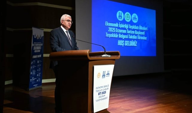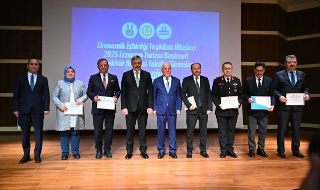 Erzurum Valisi Mustafa Çiftçi, 'Ekonomik İşbirliği Teşkilatı Ülkeleri (EİT) 2025 Erzurum Turizm Başkenti Teşekkür Belgesi Takdim Töreni'ne katılım sağladı.Vali Çiftçi; EİT 2025 Erzurum Turizm Başkenti etkinlikleri kapsamında emekleri geçen kamu kurumları, yerel yönetim, sivil toplum kuruluşları temsilcilerine toplamda bin 303 Teşekkür Belgesi/Başarı Belgesi takdim etti.Vali Çiftçi, "Mart ayında, geniş katılımla Uluslararası AFAD Kış Tatbikatı gerçekleştirildi. Cumhurbaşkanı Yardımcımız Sayın Cevdet Yılmaz'ın katılımıyla 'Palandöken Ekonomik Forumu', 'Kariyer Fuarı' ve ardından resmî açılış töreni düzenlendi. Bu etkinlikler başarıyla tamamlandı. Aynı şekilde ilçelerimizde de çeşitli programlar bugüne kadar gerçekleştirildi. İnşallah yıl sonuna kadar bu etkinlikler devam edecek. Yaz Oyunları, gastronomi şöleni, uluslararası bisiklet turnuvası, yeniden Kış Oyunları gibi organizasyonlar da takvimde yer alıyor. Böylece 2025 yılı, Erzurum açısından dolu dolu, yaklaşık altmış yetmiş civarında nitelikli etkinlikle tamamlanmış olacak. Bu noktada, Erzurum'un Ekonomik İşbirliği Teşkilatı Turizm Başkenti olmasındaki en büyük katkı hiç şüphesiz Muhterem Cumhurbaşkanımıza aittir. Onun iradesi olmasaydı 2025 yılında Erzurum bu ünvanı alamazdı. Bu vesileyle zat-ı devletlerine şükranlarımızı sunuyor, teşekkürlerimizi iletiyoruz. Aynı şekilde Kültür ve Turizm Bakanımızın da bu süreçte önemli katkıları oldu. Ben, Sayın Cumhurbaşkanımıza ve Kültür ve Turizm Bakanımıza huzurlarınızda şükranlarımı sunuyorum." ifadelerine yer verdi.