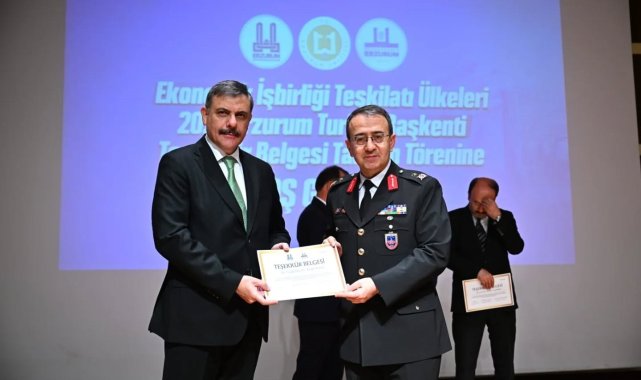 Erzurum Valisi Mustafa Çiftçi, 'Ekonomik İşbirliği Teşkilatı Ülkeleri (EİT) 2025 Erzurum Turizm Başkenti Teşekkür Belgesi Takdim Töreni'ne katılım sağladı.