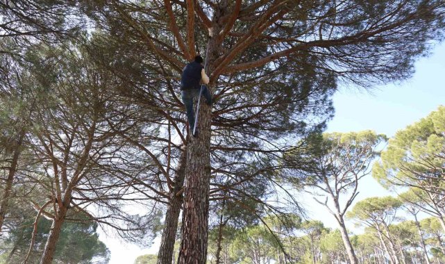 Türkiye'nin önemli tarım kentlerinden olan Aydın'da, incir, zeytin, pamuk ve kestaneden sonra halkın geçim kaynaklarından olan çam fıstığında hasat başladı. Hasat işlemi oldukça tehlikeli ve zor olmasına rağmen kozalak toplayan işçiler ölümü hiçe sayıp ağaçlara adeta bir komando gibi tırmanıyor.Son yıllarda Aydın'da dağlık alanlarda sıkça dikilip yetiştirilmeye başlanan çam fıstığı hem çiftçilerin hem de çalışanların yüzünü güldürüyor. Toptan olarak kilosu 3 bin TL'den satılan fıstık çamlarının bir tek kozalağı bile altın değerinde olurken yaklaşık 30-35 metre yüksekliğe sahip çam ağaçlarının tepesinde bulunan kozalakları toplamak da oldukça zor ve tehlikeli. İşçilerin maharetli bir şekilde metrelerce yükseklikteki ağaçlara tırmanışları ise görenleri şaşırtıyor. Adeta bir komando gibi ağaçlara rahat bir şekilde çıkan ve üzerinde gezinen işçiler, tehlikeli olsa da işini severek yapıyor.Özellikle Koçarlı ilçesine bağlı köylerde yaygın olarak üretilen çam fıstığının ülke ekonomisine kazandırılması için metrelerce yükseklikteki çam ağaçlarına tırmanan toplama işçileri günlük 3 bin 500 TL yevmiye ile çalışıyor. Oldukça tehlikeli olan kozalak düşürme işlerinde adeta ölüme meydan okuyan erkek işçiler, alıştıkları için ağaca tırmanmanın ve metrelerce yükseklikteki ağaçların tepesinde çalışmanın zor olmadığını belirttiler. Ağaçtan kozalak düşürme işlemi sırasında düşenlerin büyük çoğunluğunun hayatını kaybettiğini ifade eden işçiler ekmek parası için yine de bu işi yaptıklarını söylediler."Tehlikeli olduğu için işçisi az"'Künar komandosu' olarak bilinen işçilerden Salih Narıncalı, çocukluğundan beri bu işle uğraştığını ifade ederek "Çocukluğumdan beri ağaca tırmanıyorum, çalışıyorum. İşimiz bu. Çengel olduğu için, kayıyor. O yüzden alışığım. Korkmuyoruz. Yıllardan beri bu işi yapıyoruz. Ortalama 20 seneden beri bu işi yapıyorum. Allah bereket versin kazancımız iyi. Ağaçlar yüksek olduğu için çıkacak kişi neredeyse yok. İşçisi az bu işin. Yeni nesil tehlikeli olduğu için bu işi yapmıyor artık" dedi.Hasat zamanı en büyük sıkıntılarının işçi bulmak olduğunu ifade eden künar üreticisi Mehmet Karadağ ise "Bu işi herkes yapamıyor. Meşakkatli ve zor bir iş. Allah bereket versin şu anlık fiyatlar iyi. Kilosu 2 bin 500, 3 bin bandında. İşçi yevmiyesi de 3 bin 500 bandında. Her meslekte de olduğu gibi künar hasadı yapacak işçi bulma konusunda yeni nesilde sıkıntı var yani. İşçi konusunda sıkıntımız var" diye konuştu.